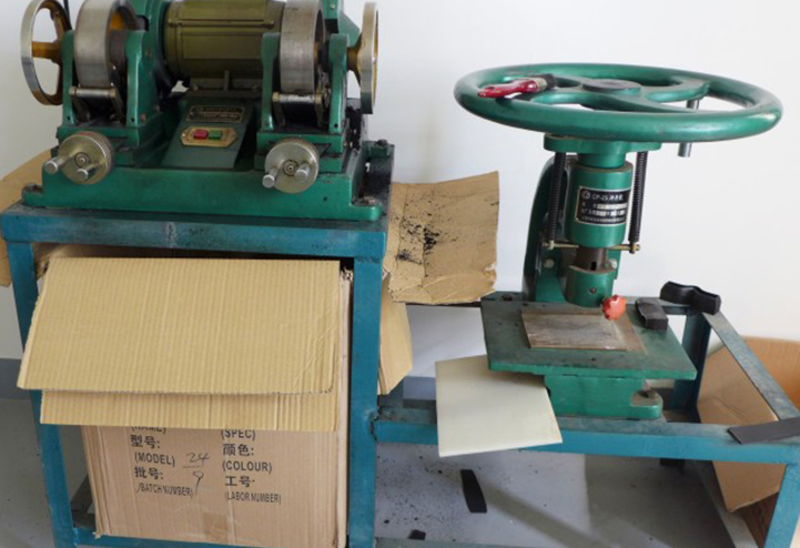 (左)磨片机-(右)冲片机
